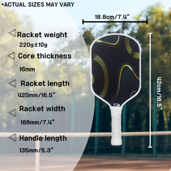 Unlock your full potential with the 16mm Pickleball Training Paddle, engineered for players who want to sharpen control, improve consistency, and build power during training sessions. Featuring a reinforced honeycomb polymer core and advanced carbon fiber face, this paddle ensures maximum durability and accuracy. The Carbon Fiber Pickleball Paddle design minimizes vibration, enhances ball feel, and gives you a pro-level experience with every swing — perfect for athletes focused on long-term improvement and skill mastery.