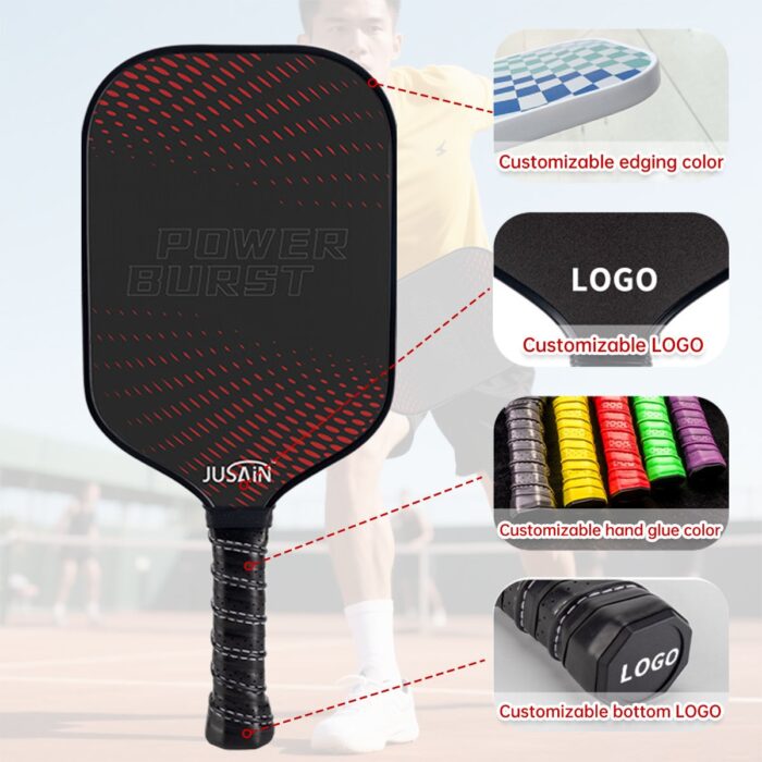 Players can customize their paddles with personalized grip wraps, logo printing, and handle adjustments tailored to their comfort and playing style. Choose from a variety of grip sizes, edge guard colors, and surface finishes to create your unique professional racket. For clubs or brands, OEM/ODM customization options are available directly from our manufacturer, allowing bulk orders with exclusive branding and design integration.