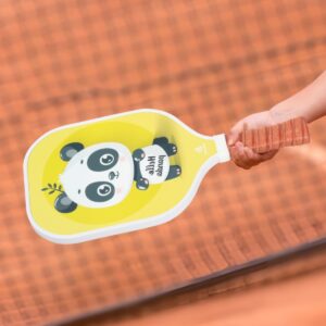 Your child will love every moment of playing pickleball with this panda-themed paddle that blends fun aesthetics with reliable functionality. Designed for both entertainment and learning, this paddle helps young players improve their hand-eye coordination while maintaining lightweight maneuverability. The honeycomb core structure adds excellent control and shock absorption, allowing kids to practice safely and effectively. The polyester carry bag ensures portability, making it an ideal choice for both indoor and outdoor play.