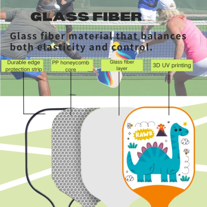 Bring excitement and personality to every game with the Custom Cartoon Print Racket, a playful and durable pickleball paddle designed especially for kids’ training and recreational fun. Featuring a bright, dual-sided design, this paddle is built with lightweight yet sturdy glass fiber material and a comfortable grip that helps children improve coordination while enjoying the sport. With its Portable Custom Design Paddle, every young player can express their individuality on the court while developing essential pickleball skills. This vibrant racket encourages fun, confidence, and teamwork — the perfect blend of play and performance!