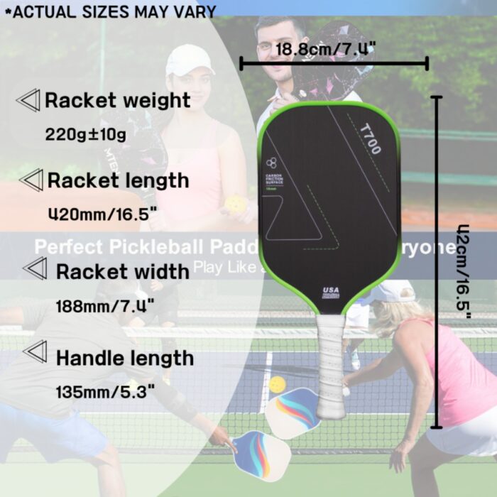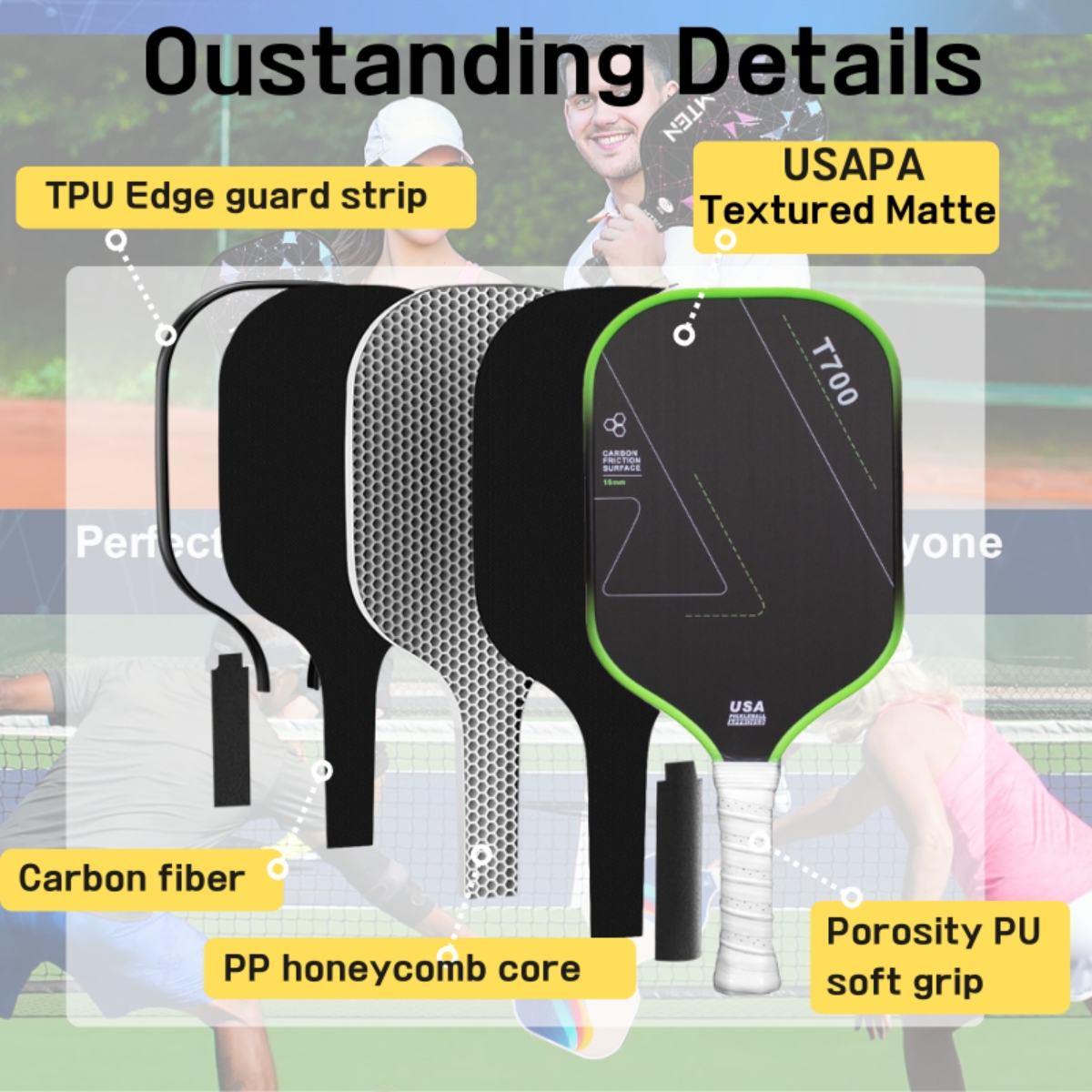 Take your pickleball game to the next level with the Elongated Body Carbon Paddle, meticulously engineered from premium T700 carbon fiber for superior durability and performance. This high-quality paddle features a hot-pressed 16mm honeycomb core designed to maximize power, control, and speed. Its elongated shape with a three-dimensional lifting pattern offers enhanced grip and spin potential, making it perfect for both competitive training and recreational play.