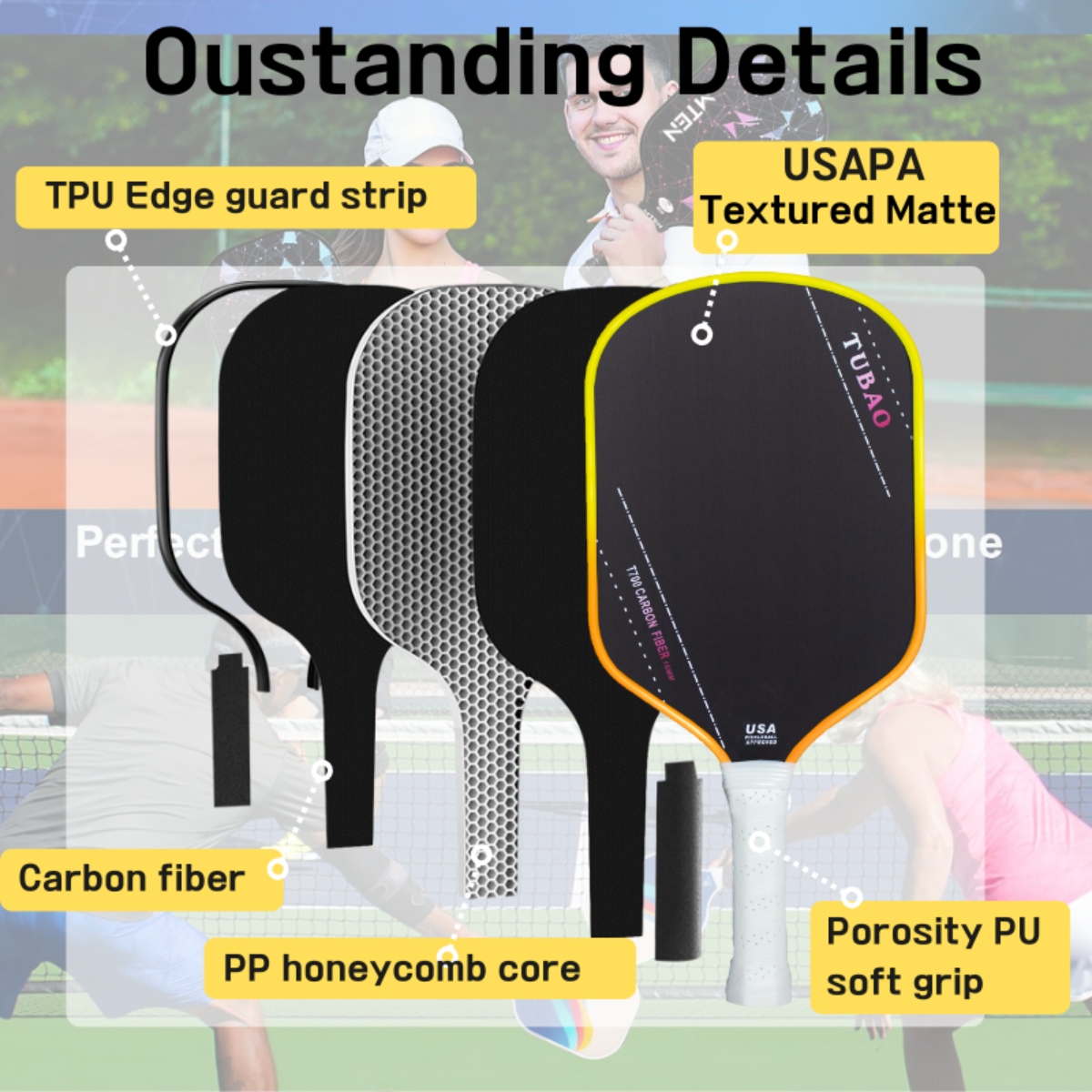 Mastering the paddle is easy with its intuitive design. Its balanced weight and ergonomic grip allow players to transition smoothly between serves, volleys, and smashes while maintaining precision and power.