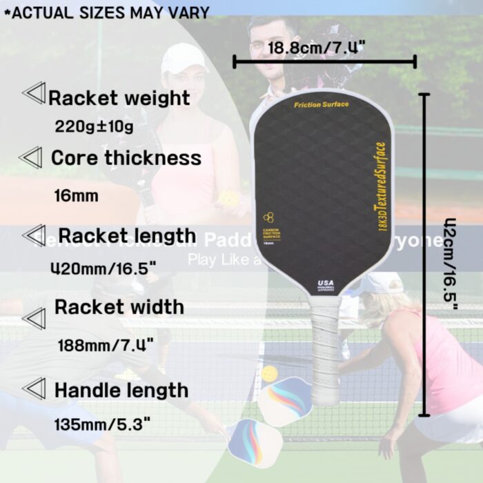 Enhance your pickleball experience with the Integrated Carbon Paddle Bag Set, featuring the advanced 3D Lifting Pattern Paddle. Lightweight carbon fiber, 16mm honeycomb core, and an integrated paddle bag combine professional performance, durability, and portability in one premium set. Perfect for competitive players and enthusiasts.