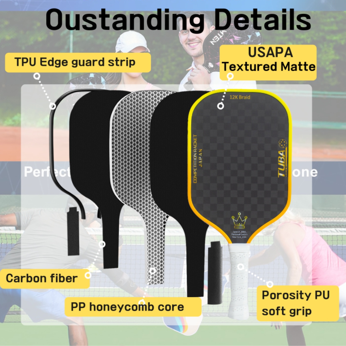 🔹 Professional Carbon Surface: The 12K woven carbon fiber face provides superior ball control and spin power for competitive play.