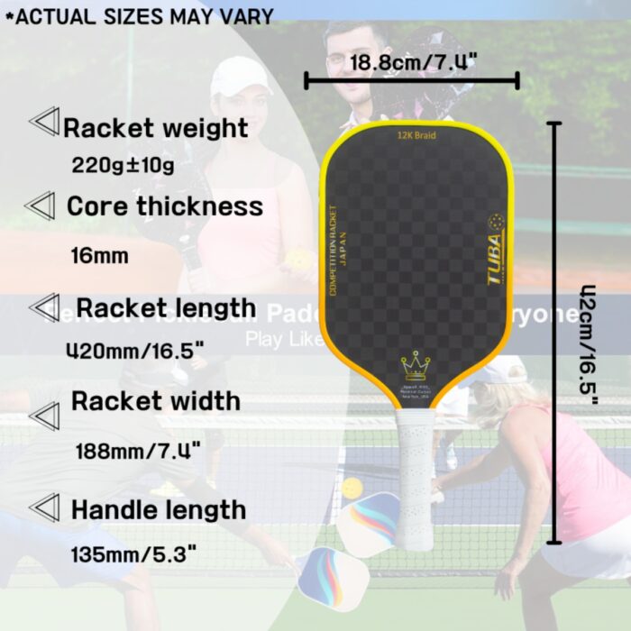 Experience unmatched balance, control, and power with the 12K Pro Pickleball Racket, a high-quality sports innovation crafted for players who aim to dominate the court. Designed with 16mm thick carbon fiber and a durable polypropylene (PP) honeycomb core, this paddle ensures superior responsiveness with every strike. Whether you’re a professional competitor or a casual player, its lightweight yet solid build enhances maneuverability while minimizing vibration. The ergonomic grip provides exceptional comfort for long matches, while the 12K woven carbon surface delivers optimal spin and shot accuracy. Play your best game yet with a paddle engineered for excellence and endurance.