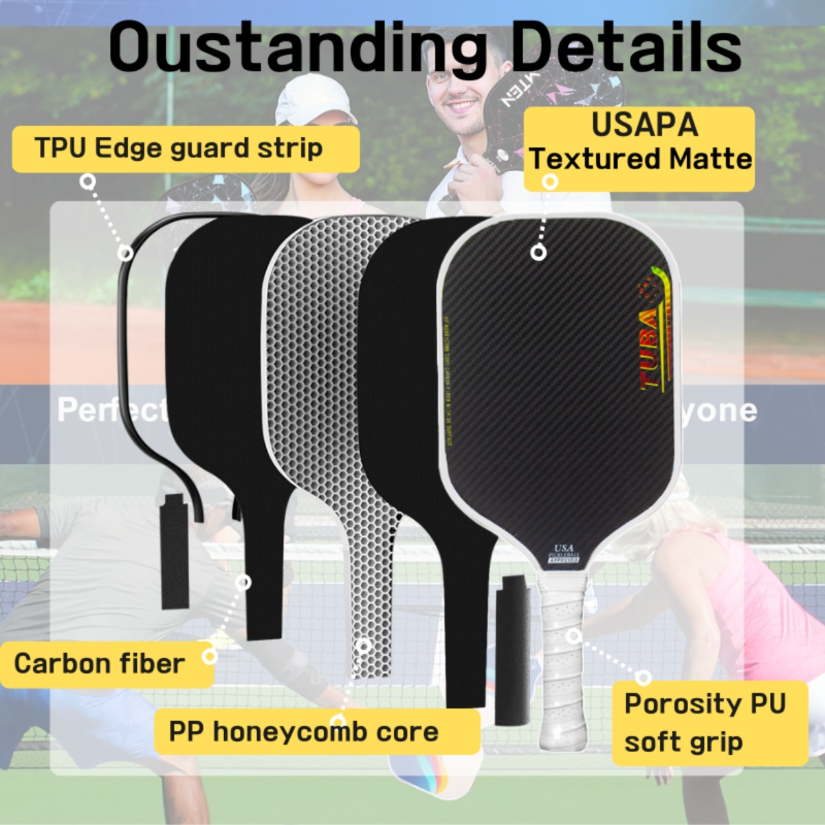š¹ Focus on proper swing mechanics and angle adjustments to utilize the paddleās honeycomb core and carbon fiber strength for precision shots.