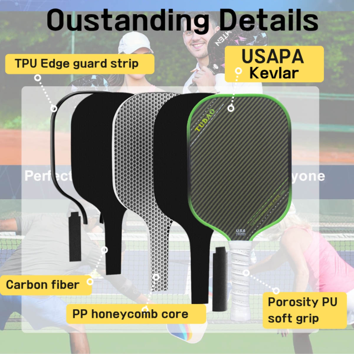 Don’t settle for ordinary paddles when you can elevate your game with the Professional Grade Pickleball Paddle. Order today to experience the perfect blend of Kevlar carbon fiber strength, thermoformed honeycomb precision, and propulsion design for unmatched control, power, and comfort on the court. Transform your play, impress your opponents, and bring professional-grade quality to every match!