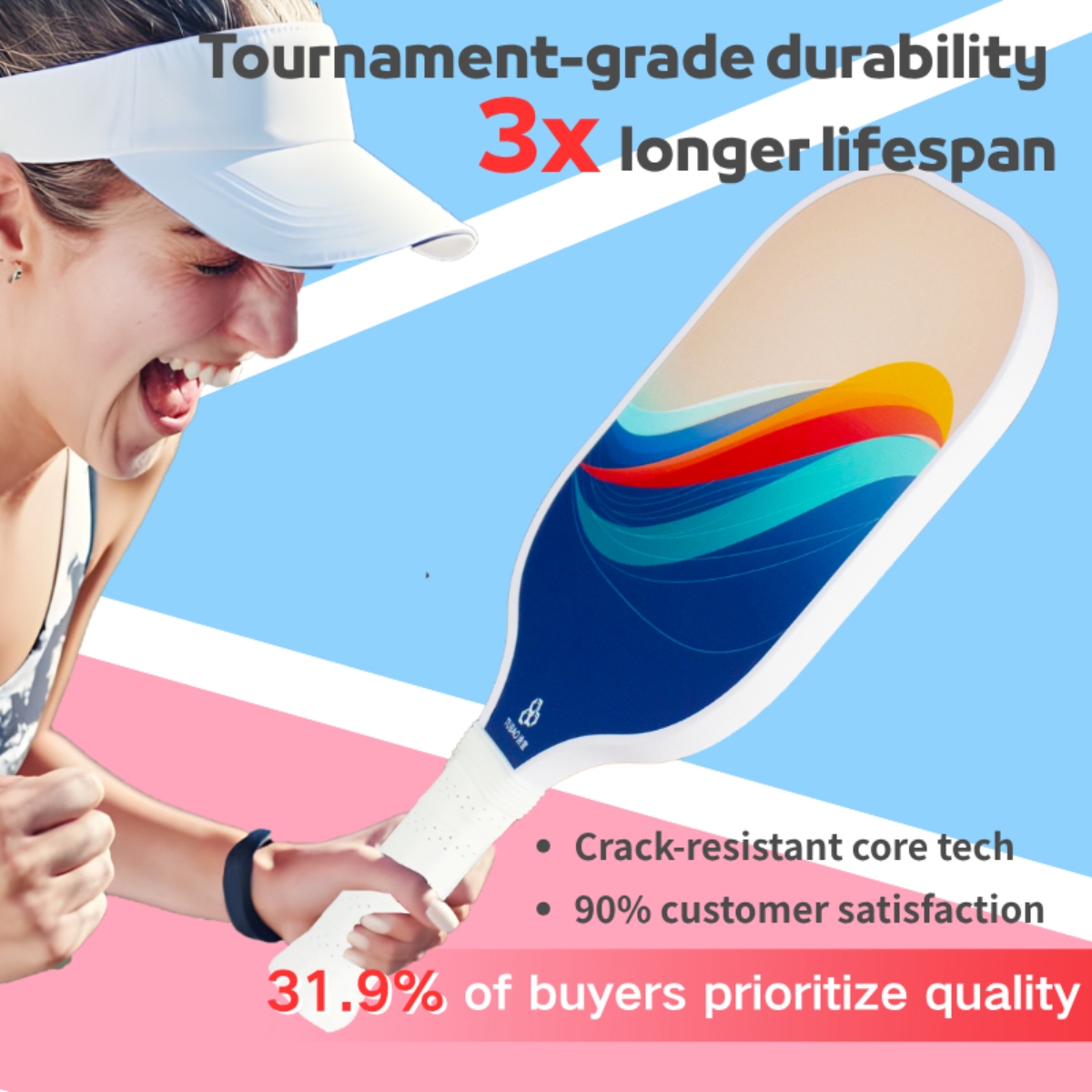 Customization options allow you to make your paddle truly yours. Add your logo, color themes, or personalized text to represent your team or brand. Choose from various handle grips, surface finishes, and core densities for a tailored playing experience. Our factory offers fast customization services with bulk order support and private labeling for professional or promotional needs.