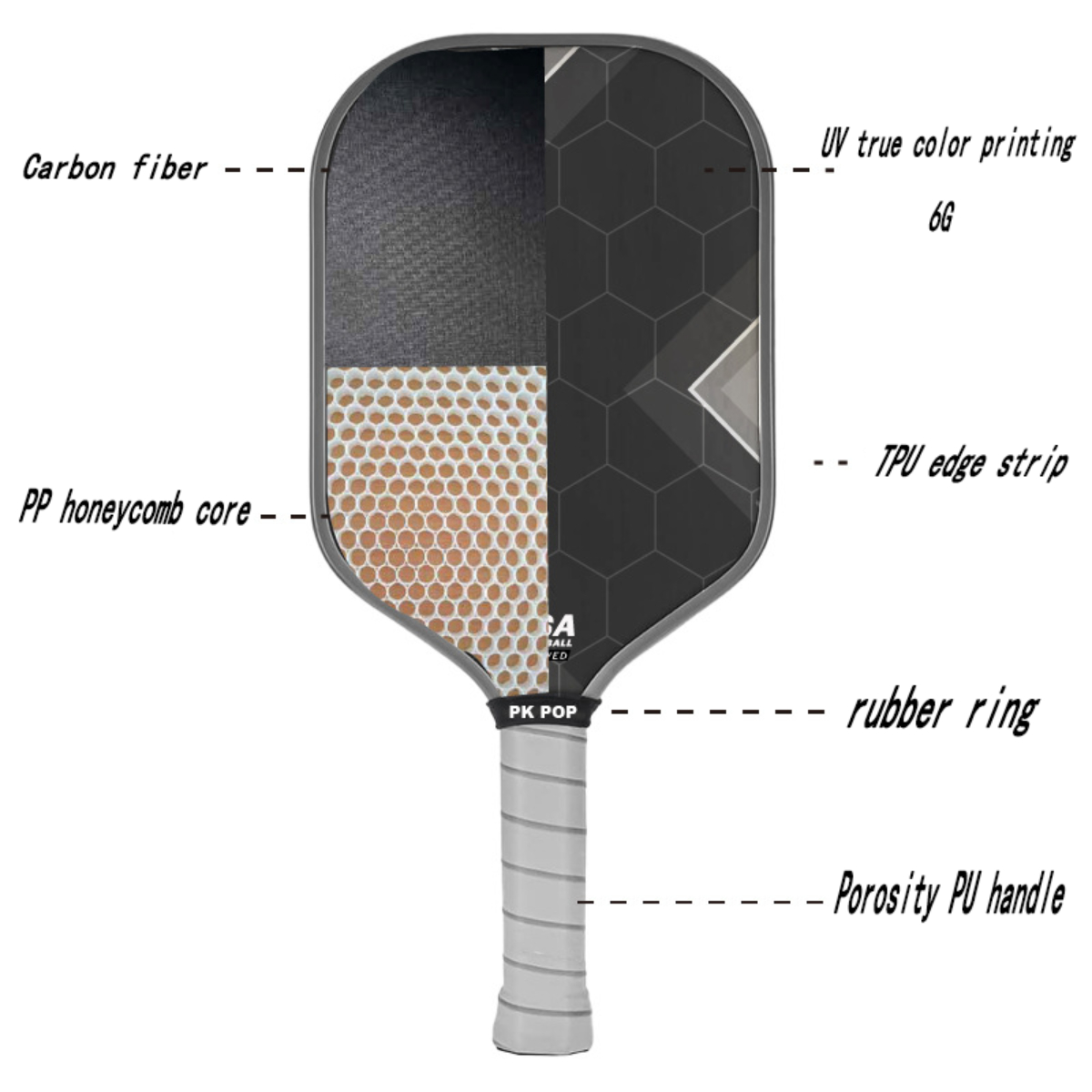 Mastering the Textured Carbon Fiber Racket is simple and rewarding. Grip it firmly yet comfortably to maintain control during serves and volleys. Its textured surface allows players to generate spin effortlessly, while its balanced weight ensures smooth transitions between offensive and defensive plays. Whether indoors or outdoors, this paddle adapts to your game style, ensuring reliable performance on any court.