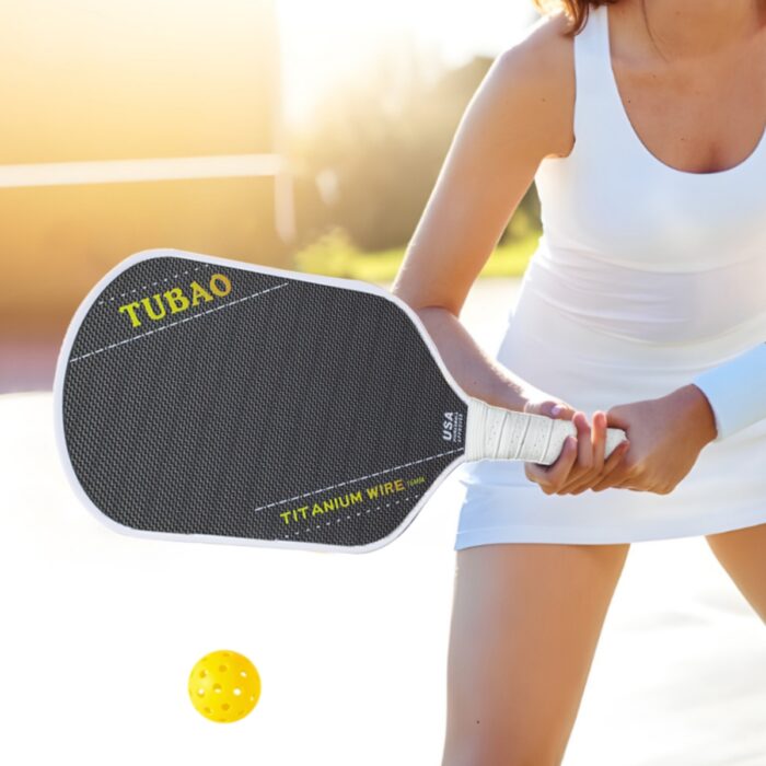 The Top Titanium Racket with Carry Bag is built to redefine your pickleball experience, combining elite materials with next-generation construction for players who demand both strength and sophistication. Its aerodynamic design enhances swing speed, while the thermoformed frame improves balance and shock absorption. Every shot feels crisp, stable, and perfectly controlled, even during long matches.