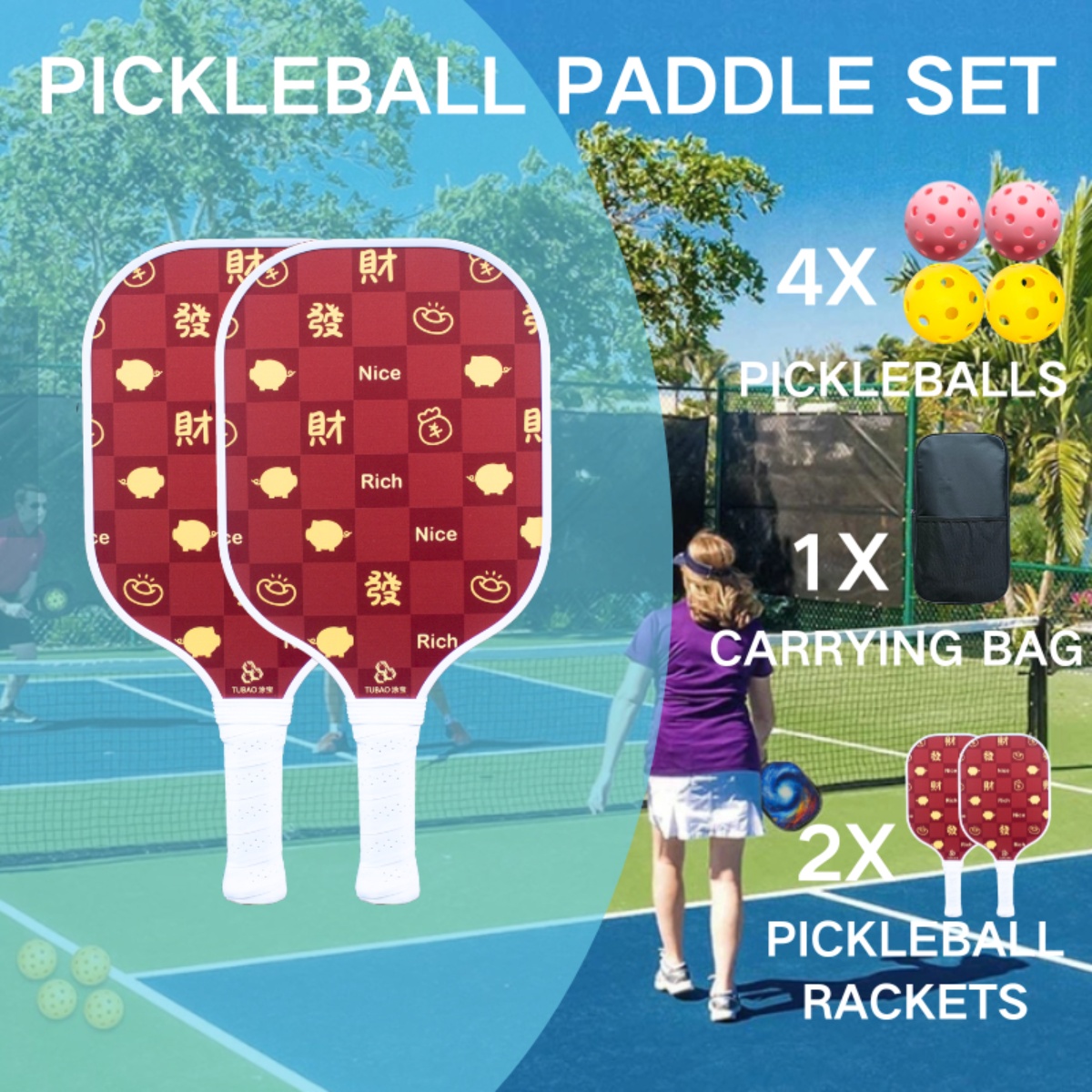 Players and organizations can personalize their paddle sets for clubs, teams, or promotional events. Add your custom logo, name, or team colors to the paddle face for a unique, professional touch that represents your personal or brand identity. Whether you want to gift it or equip your sports group, the customization options allow you to create a truly distinctive set that reflects your style on the court.